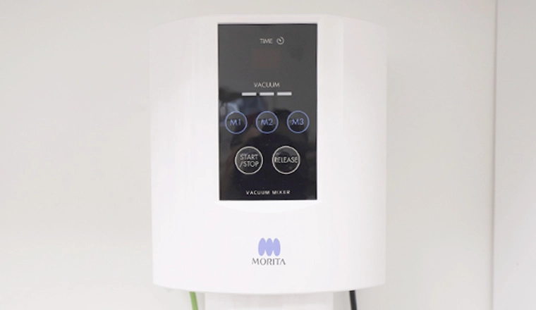 高精細な模型を製造する際に必要な技工用の機器になります。通常、手で練ることの多い石膏ですが、真空練和を行うことでより精密な模型を作製できるので被せ物の精度の向上に繋がります。