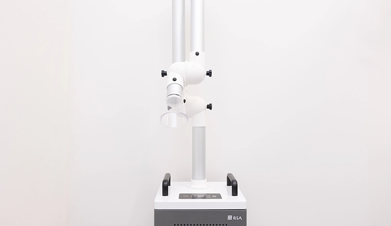 歯科医院には治療中に発生する目に見えない物質や、多くの人の出入りで入り込む小さなホコリや細菌、ウイルスが浮遊しています。こうした有害物質は、通常の空気清浄機では取り除くことができません。当院では、先進の医療機関向け空気浄化装置「メディカルライトエアー」を導入することで、空気中のあらゆる有害物質を除去し、院内感染予防を行っています。