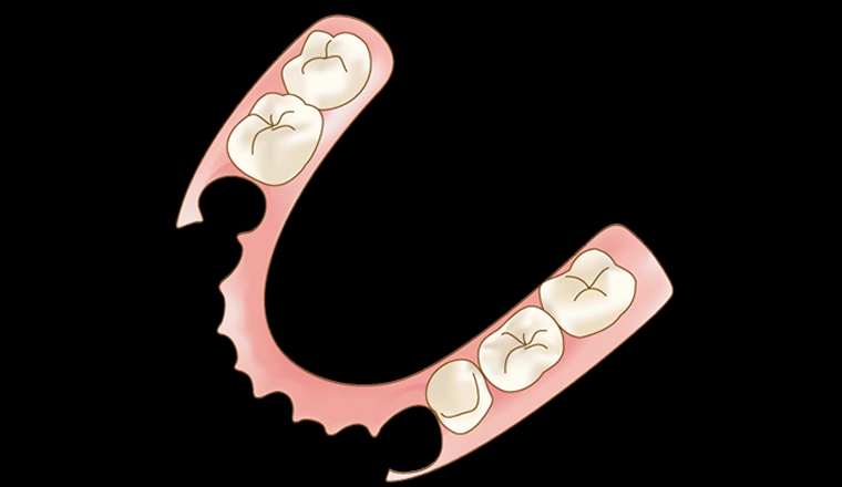 数本の歯を失った場合には、部分的な入れ歯を作ります。保険診療では金属のバネ(クラスプ)で固定するタイプのみとなります。